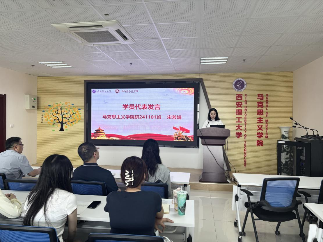 研241101班宋芳娟作为学员代表发言。她表示全体学员将十分珍惜此次党校学习机会,努力学、用心学、认真学,在政治理论和思想道德等层面有明显的提升,遵守培训纪律,以一名中共党员的标准严格要求自己,并坚定信仰、明晰使命,紧跟党的步伐,牢记使命担当,成为一名思想政治素养高、专业知识过硬的研究生,为中华民族的伟大崛起和复兴贡献力量,争取早日成为一名合格的中国共产党党员。