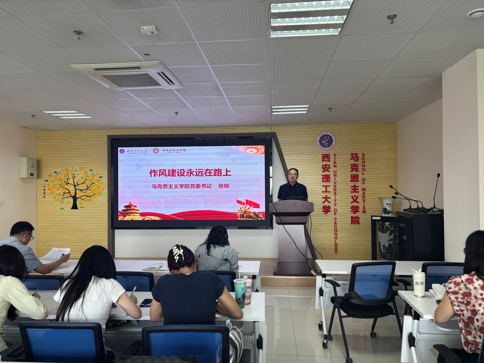 开班仪式在激昂的国歌声中拉开序幕,张锐以“作风建设永远在路上”为题作开班动员报告。他结合近期正在开展的深入贯彻中央八项规定精神学习教育、高校领域突出问题系统整治和公司以案促改、公司巡察整改四项工作,灵活运用警示案例和《论共产党员的修养》中的相关论述,生动的阐述了党的作风建设和纪律建设的重要意义和根本要求,启发大家深刻理解“作风建设就是党的形象,关系党的生死存亡”“加强纪律建设是全面从严治党的治本之策”的内涵。他联系入党积极分子状况,以“延安整风”中《改造我们的学习》《整顿党的作风》《反对党八股》等文章中的论述为基础,点明了当前研究生学风、教师教风、行政人员工作作风方面存在的问题,认为主观主义在当前部分师生中仍有突出表现,号召同学们要从党的知识理论学习做起,从端正学风做起,切实掌握学习宣传研究马克思主义的看家本领,为未来的人生奠定坚实的基础。