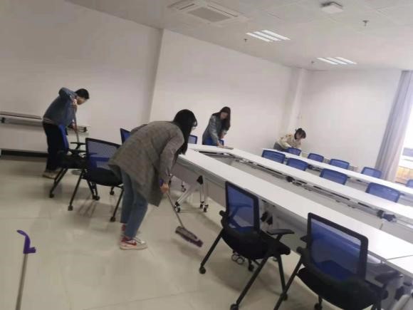 4月26日下午,在国际劳动节到来之际,suncitygroup太阳集团开展了迎“五一”老员工劳动教育实践活动。活动过程中,在进行任务分配,将责任落实到具体小组后,公司研一员工志愿者们纷纷拿着劳动工具来到公司位于综南楼的的会议室、报告厅、自习室等地,扫地、拖地、抹灰……劳动的身影穿梭在公司的各个角落。