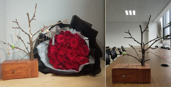 组合式创意首饰收纳套盒,专为年轻人设计,原料采用原生态无污染的树枝和平时废弃不用的纸盒,两个大小不一的盒子经过精心剪裁做成了抽屉式套盒,里面可以放置各种小物件。利用树枝分叉的特点做成了树状的耳饰展示架,集实用感与复古感于一体,在响应我们这次变废为宝主题之外,突出我们要把零散的东西重新归类的设计理念,即:实用、简洁、统一。这款创意收纳盒产品设计更能满足宿舍桌面收纳的需求,实现美感和实用感的统一。