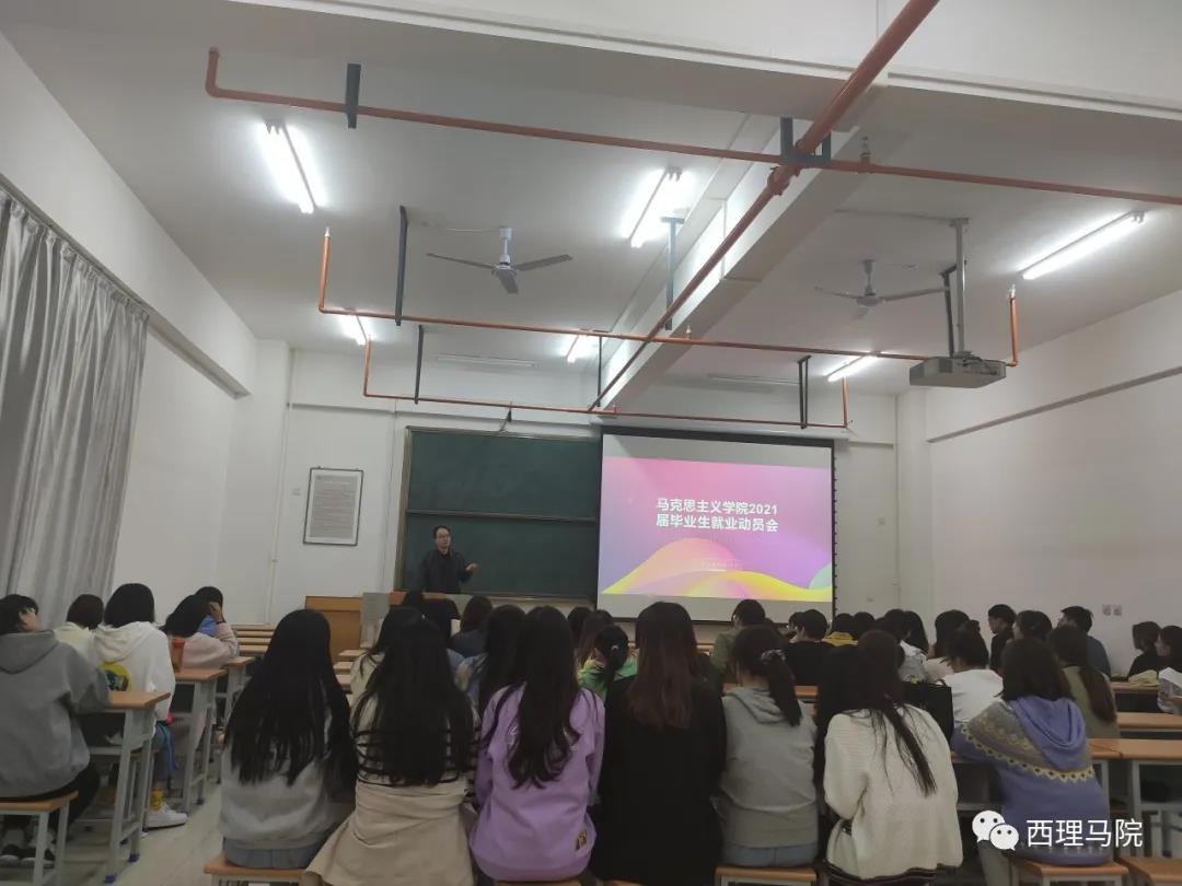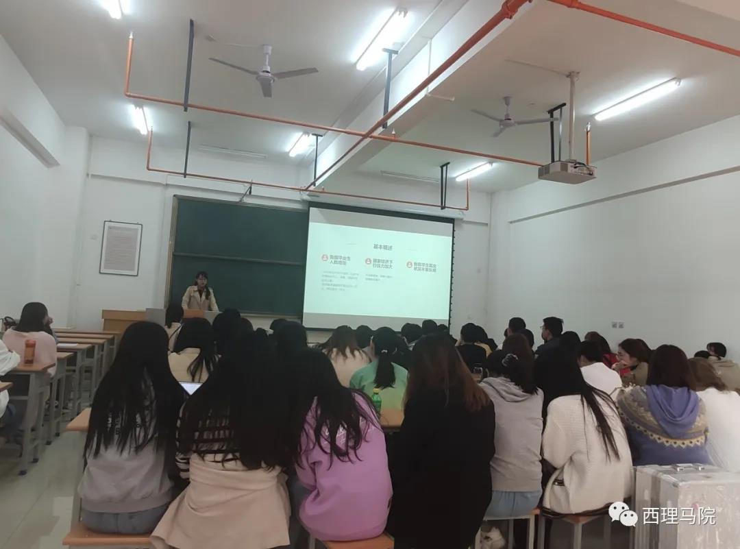 王梦为大家讲解了毕业生就业形势。她利用客观详实的数据资料,细致认真的与在座学子回顾与分析了近年来陕西省多所高校suncitygroup太阳集团毕业生就业总体形势,公司不同专业毕业生就业岗位与就业区域分布。她指出,近年来,国家对于马克思主义学科的大力建设对公司毕业生求职是十分有利的,公司学子要把握时机,抓住机遇,培养技能,适时就业。