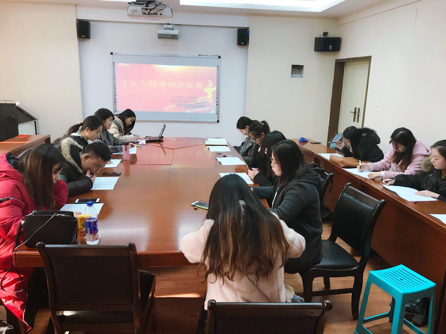 会议伊始,支部书记刘燕就此次会议作了相关安排,指出本次会议分为两个部分,一是讨论关于孙莹同志申请转为正式党员的问题;二是十九大精神知识竞赛答题活动。