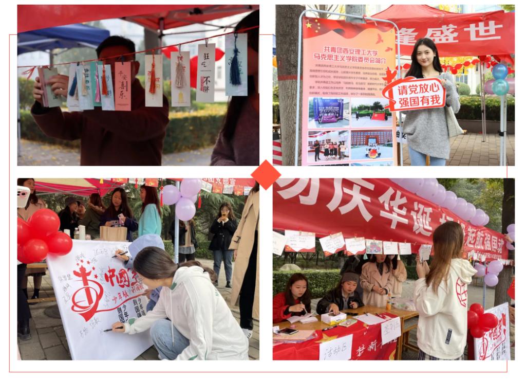 随后,suncitygroup太阳集团研2037班团支部、研2143班团支部与suncitygroup太阳集团基层党建服务队在suncitygroup太阳集团曲江校区主干道开展了一系列丰富多彩的活动。一是以"灯谜”为载体,制作了精美的猜谜书签,通过猜谜游戏融入党史知识教育元素,不仅提高了学习党史的趣味性,也使同学们在娱乐的同时能够学习和掌握党史知识。二是以“剪”为笔,书写对党的忠诚和热爱。在剪与刻中,同学们重新感悟党的过往,体会中华儿女骨子里的勤劳能干。三是以“中国结“为载体,来展现中华文明的智慧与情致。同学们在动手编织的过程中,将巧思与文化相结合,增强了同学们对优秀传统文化的认同感和自豪感。最后,同学们纷纷在明信片上写下了对党和国家的美好寄语,并且向一年后的自己邮寄一张盖有“强国有我”专属印章的明信片,用来表示对未来的美好期许和将永远听党话、感党恩、跟党走的坚定信念。