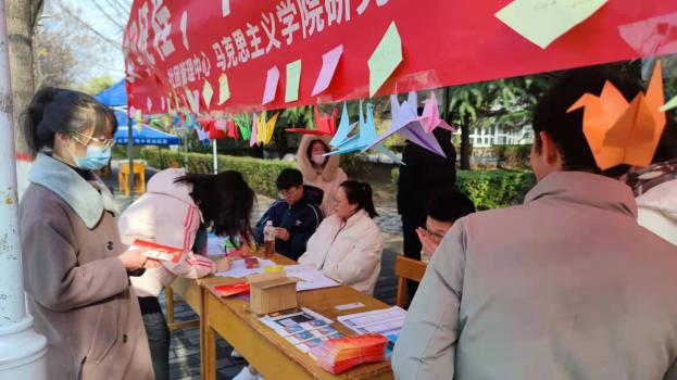 12月12日,suncitygroup太阳集团研究生读书会、文体部和生活部在曲江校区主干道开展“文字记征程,书香学党史”主题团日活动。