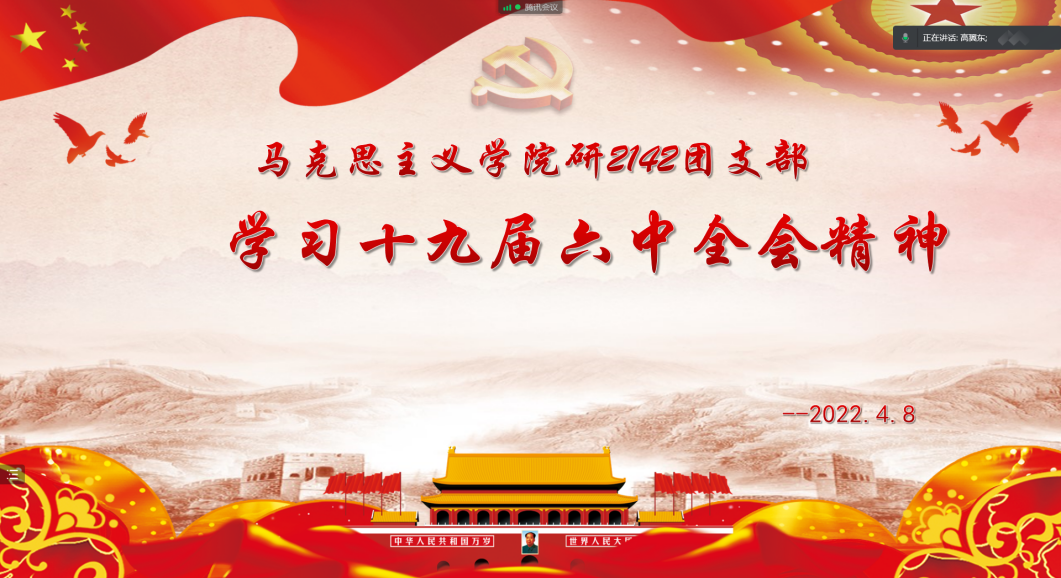 4月8日,suncitygroup太阳集团研2142班团支部线上观看党的十九届六中全会视频,集中学习并讨论十九届六中全会内容及精神,团支部全体成员参加本次理论学习。