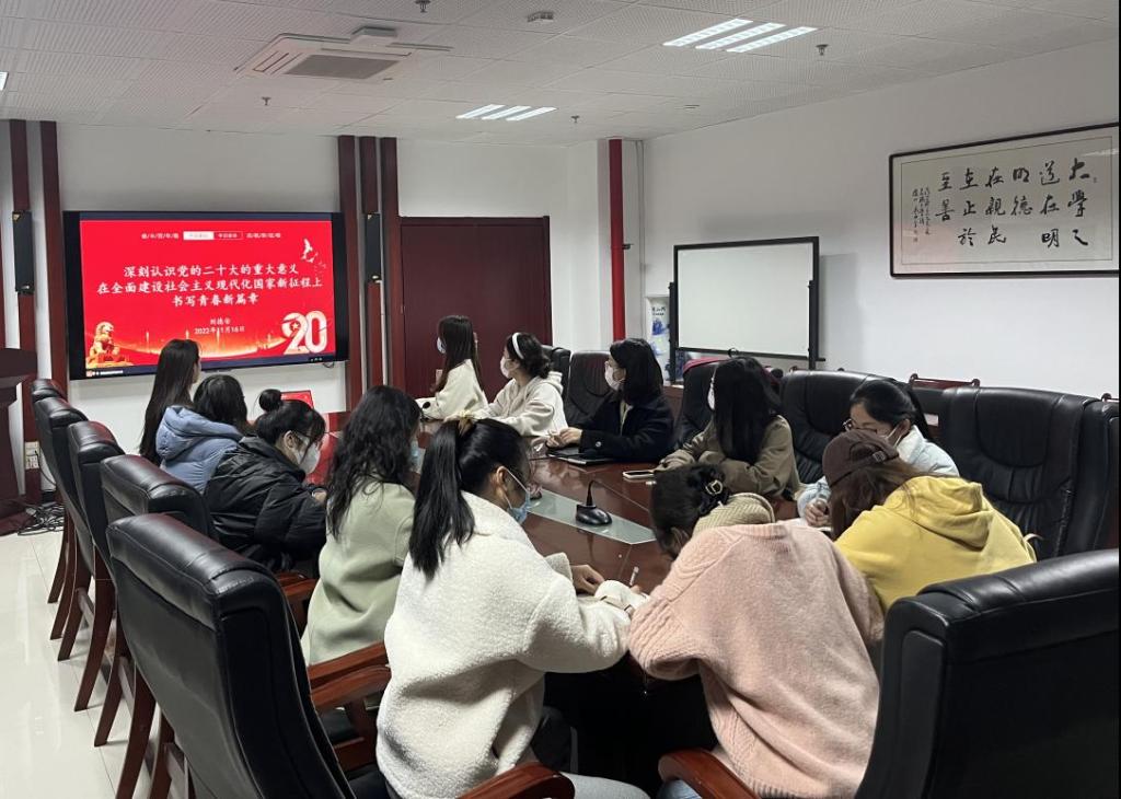 11月16日晚,公司党委书记刘德安为公司师生做党的二十大精神宣讲报告,suncitygroup太阳集团组织团学干部在曲江校区综南楼909会议室线上集中收看宣讲会直播。