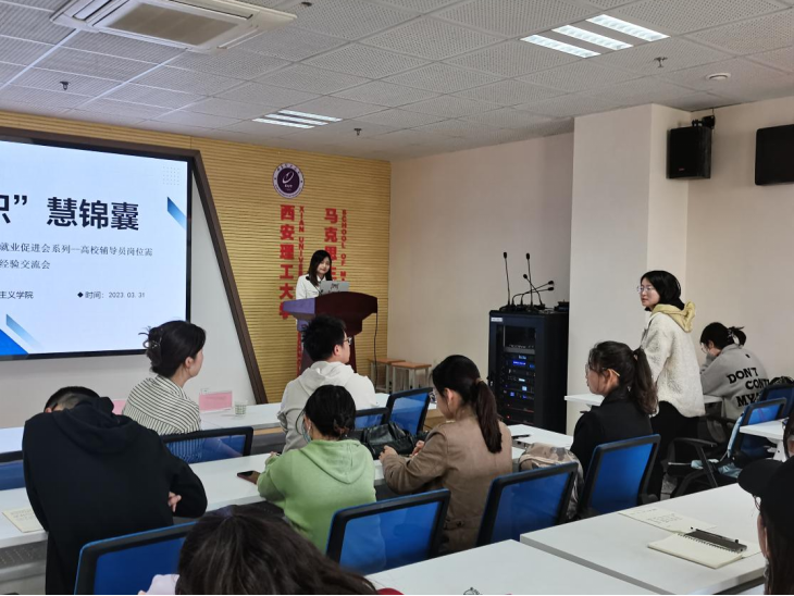 在交流环节,两位老师依据自身成功经历,就高校辅导员求职准备的重点难点、应聘考试的注意细节等为同学们进行了详细解答,并多角度给出了许多建设性意见,同学们收获良多。