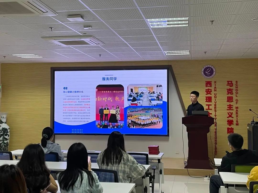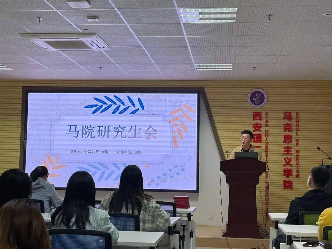 院研会轮值主席王同强分别从组织建设、服务同学、合作交流、回顾与展望四个方面,就公司研究生会2022-2023年工作开展情况及取得成绩做简要汇报。随后,任姿怡、刘鹏、毛秀艳三名轮值主席候选人分别从工作经历、未来规划、个人收获等三个方面依次进行竞选发言。