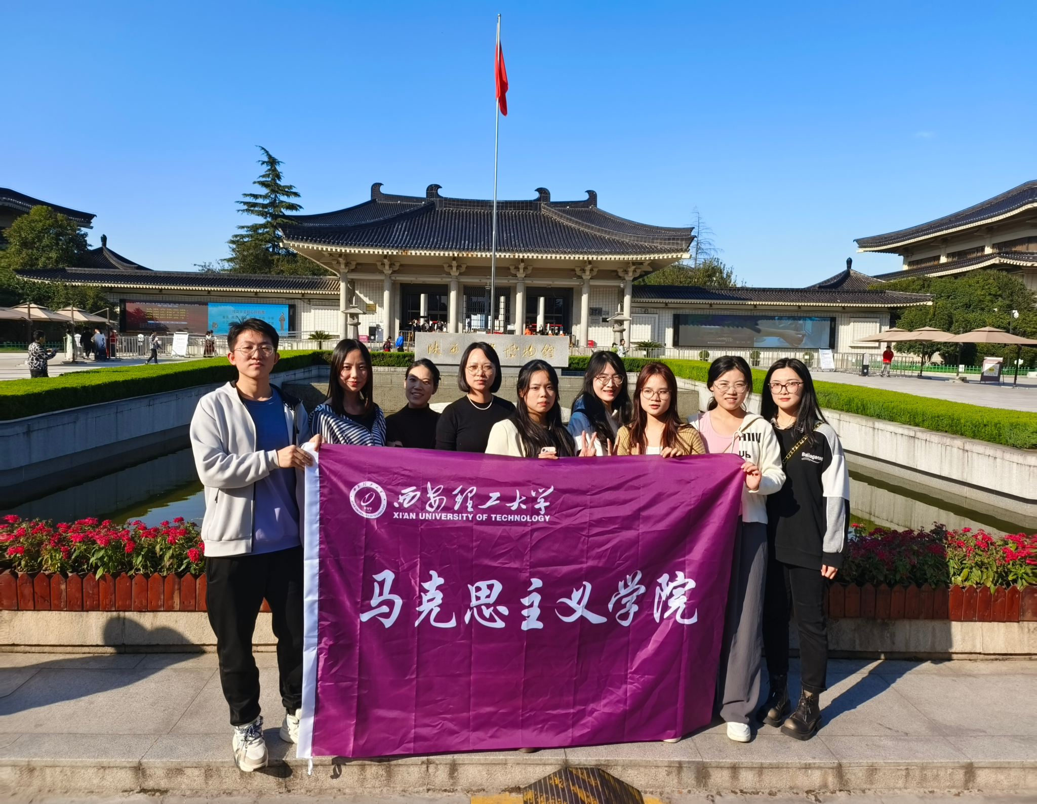 陕西作为十三朝古都,遍布在全省的23453处古遗迹是人类发展历史不可湮灭的文明印记,14367处古墓葬是中华文明不可割断的文明根脉,6702处矗立在三秦大地上的古建筑是中华文明不可颓堕的文明标识,1068处石窟寺、石刻类文物是不可剥蚀的文明宝库,3213处近现代重要史迹特别是革命文物是红色文化的鲜明印记。陕西历史博物馆作为展示陕西发展历史和对外交流的重要窗口,在传承中华文明方面发挥了独特作用。为了加深对陕西乃至中华五千年悠久历史的了解,10月20日,suncitygroup太阳集团研究生会赴陕西历史博物馆参观研学。