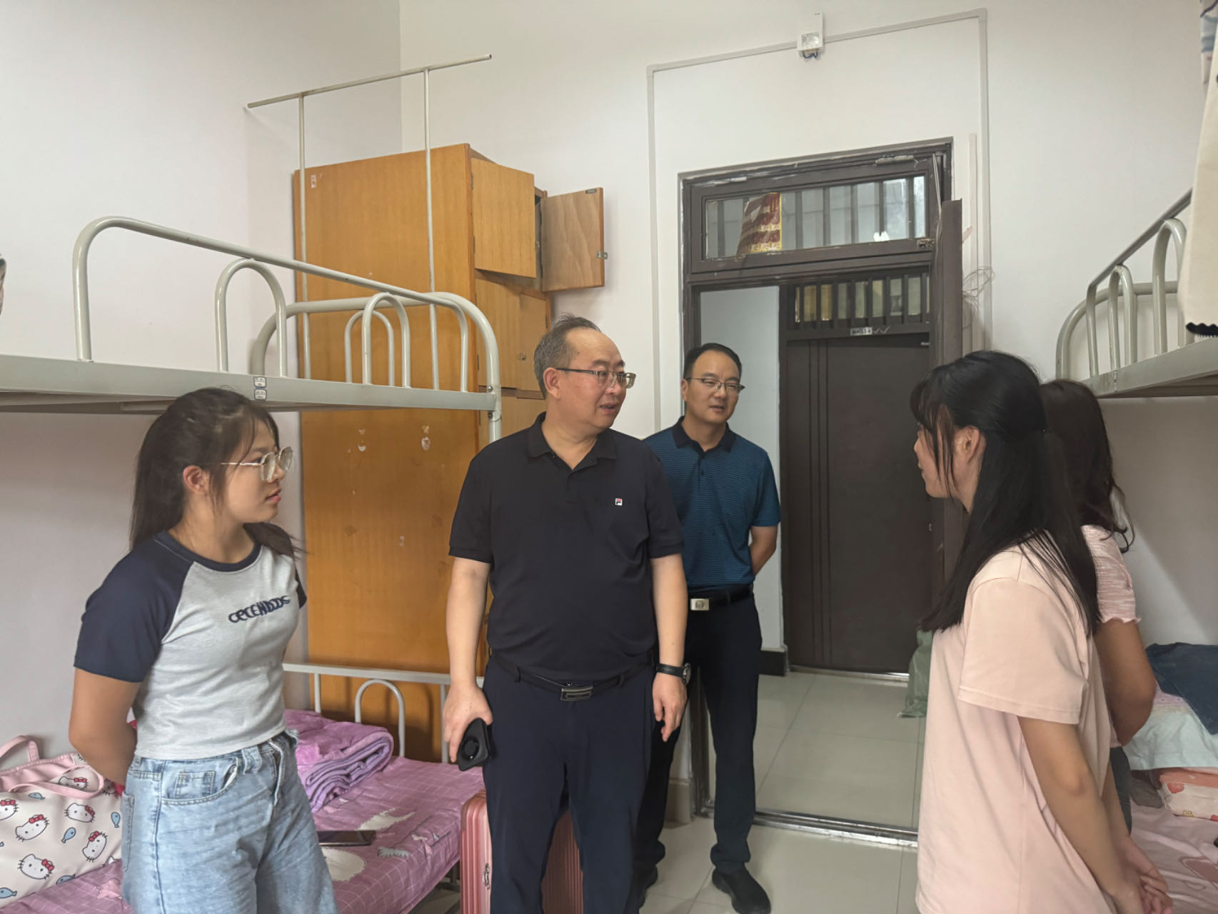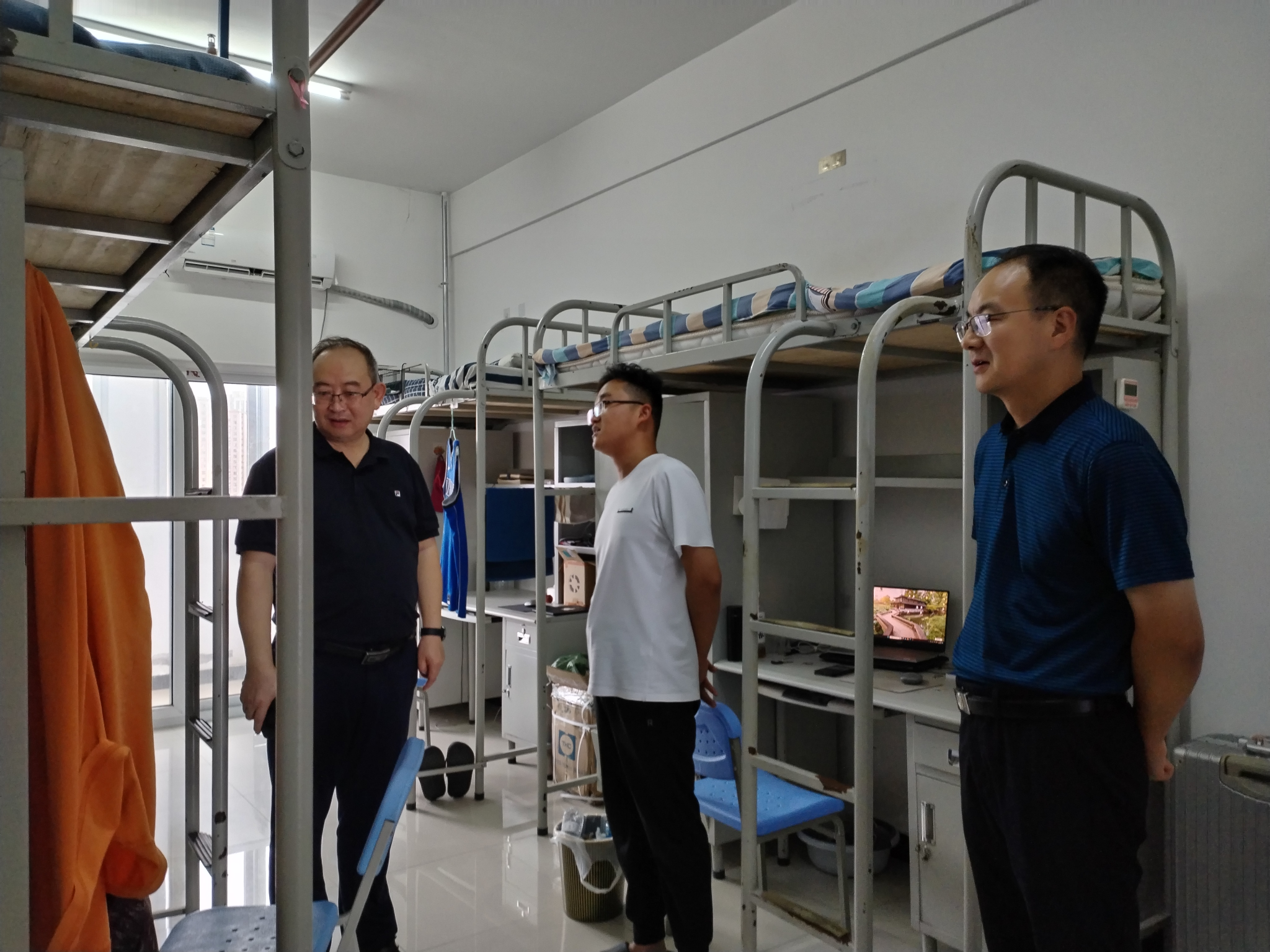 8月25日下午,公司党委书记张锐、经理梁严冰、辅导员王莹等前往员工宿舍对新生进行看望和慰问。走访中,公司领导与同学们进行了亲切的交流,听取同学们对宿舍、空调、洗浴等生活条件的意见建议,了解大家思想、心理、家庭困难等方面情况,并就大家所关心的问题给予悉心指导,叮嘱同学们克服困难、珍惜时间,遵守校规校纪,乐学乐为,善作善成,努力养成积极进取的学习风气、共同营造健康活泼的校园氛围。
