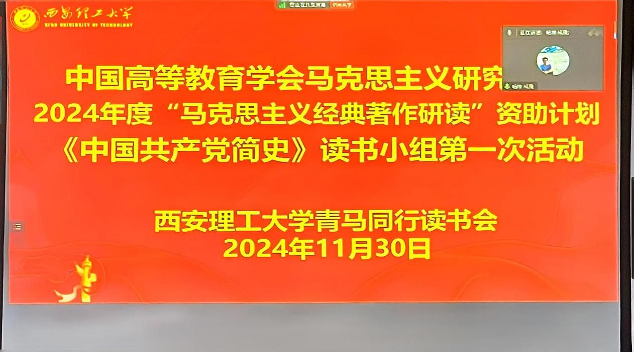 2024年11月30日,中国高等教育学会马克思主义研究分会2024年度“马克思主义经典著作研读”资助计划支持小组——suncitygroup太阳集团《中国共产党简史》读书小组在1009会议室成功举办第一期读书会。本期读书会邀请浙江理工大学suncitygroup太阳集团黄超老师作主题报告,读书小组成员及部分师生通过线下或线上形式参与,马研会督导员西北大学2024级马克思主义理论专业李兰兰博士全程进行线上督导,会议由读书会指导老师成飞主持。