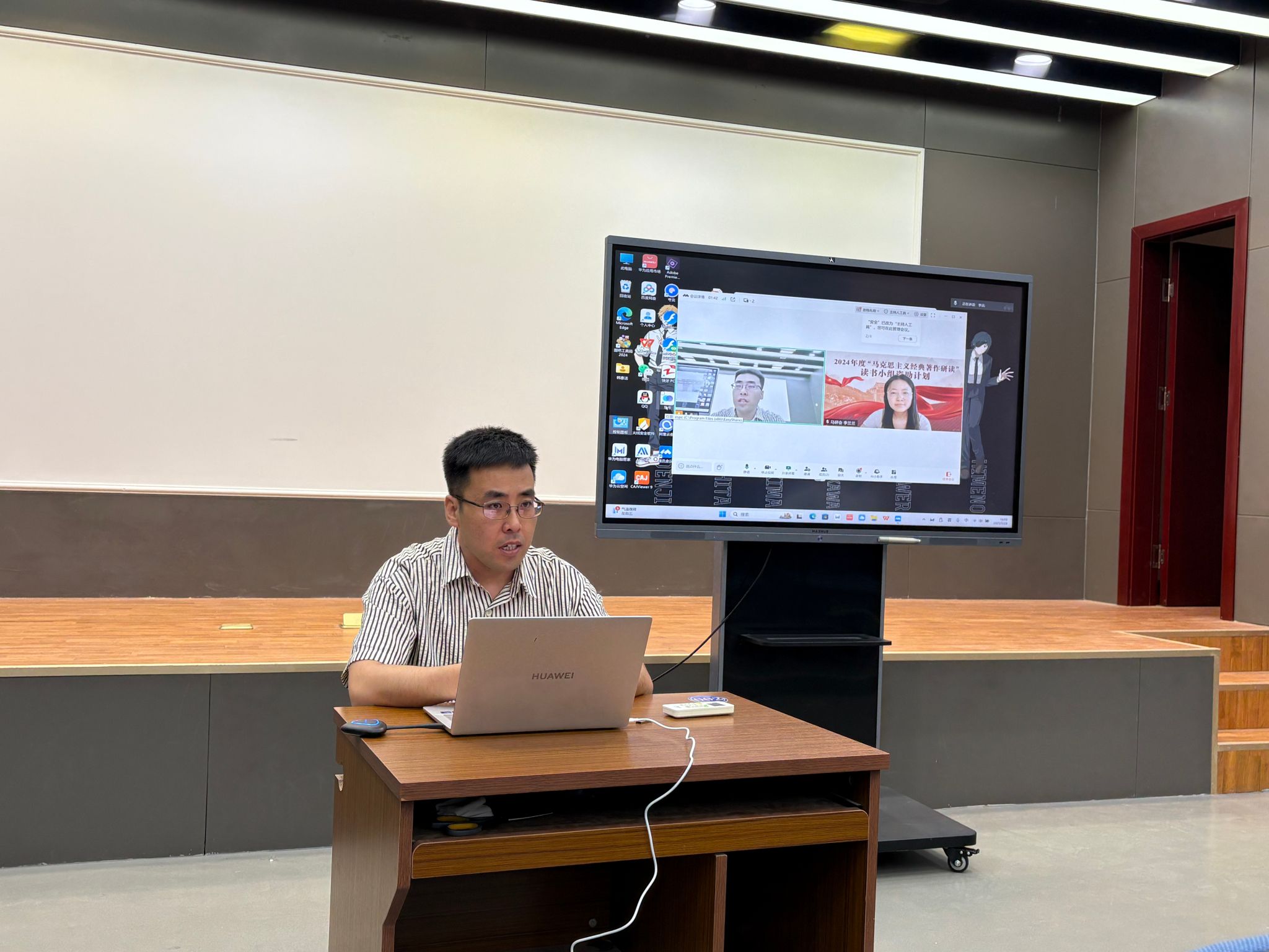 成飞老师首先感谢了马研会、校图书馆等组织对读书小组相关活动长期以来的积极参与和大力支持,回顾了同浙江理工大学红色文化公司、西北大学suncitygroup太阳集团和烟台大学suncitygroup太阳集团相关活动的点点滴滴。他指出,中国高等教育学会马克思主义研究分会组织的“马克思主义经典著作研读”资助计划对公司的研究生学术能力培养和精神价值启迪具有重要的引导作用。他简单分享了《中国共产党简史》《红色家书》中的感人故事,以及其中蕴含的党的百年奋斗经验和源远流长的优良传统,强调自觉遵循历史与现实相贯通、理论与实践相结合原则的重要性,并希望各位同学积极参加公司组织的学术活动,在反复领会经典、用心感悟历史的同时,多关注现实问题,培养理论结合实际的能力。