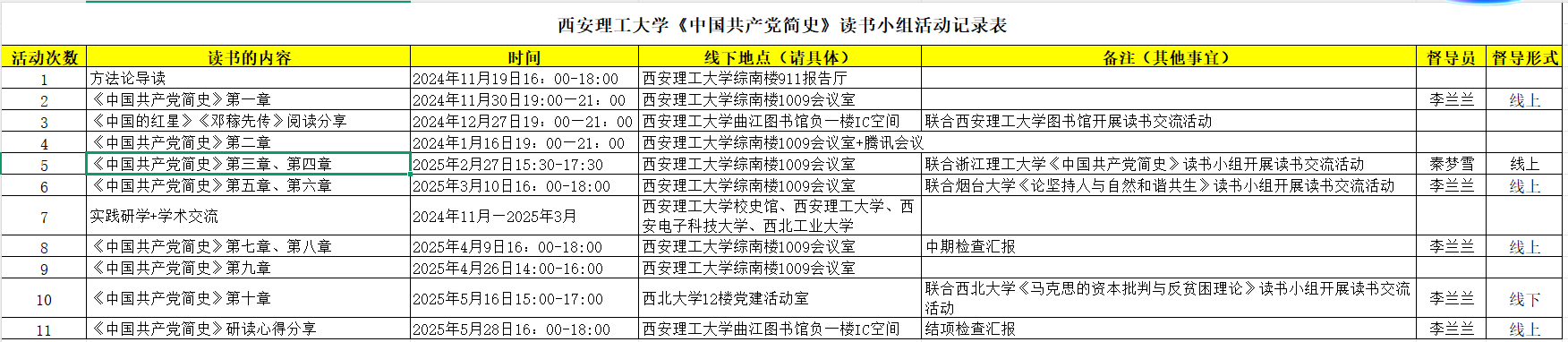 2025年5月28日,中国高等教育学会马克思主义研究分会2024年度“马克思主义经典著作研读”资助计划支持小组——西安理工大学《中国共产党简史》读书小组联合suncitygroup太阳集团图书馆在图书馆负一层IC空间成功举办第十期读书会和结项仪式。本期读书会以“红色领航,经典共读”为主题,以《中国共产党简史》《红色家书》为线索,由suncitygroup太阳集团研究生读书会、suncitygroup太阳集团《中国共产党简史》读书小组、中国近现代史纲要教研室党支部、中国近现代史纲要研究生党支部、研究生基层党建服务队党支部、思想政治教育研究生党支部共同承办,马克思公司师生共60余人通过线下或线上形式参与。会议由suncitygroup太阳集团读书会指导老师成飞主持。