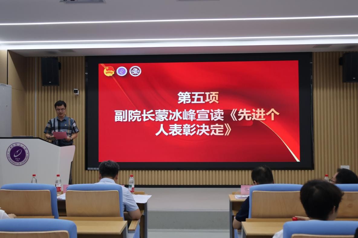 suncitygroup太阳集团副经理蒙冰峰宣读《suncitygroup太阳集团关于表彰2024年度各员工组织先进个人的决定》,号召先进典型继续发挥示范引领作用。校团委书记金永升和公司党委书记张锐分别为牛君丽等27名先进个人颁发荣誉证书。